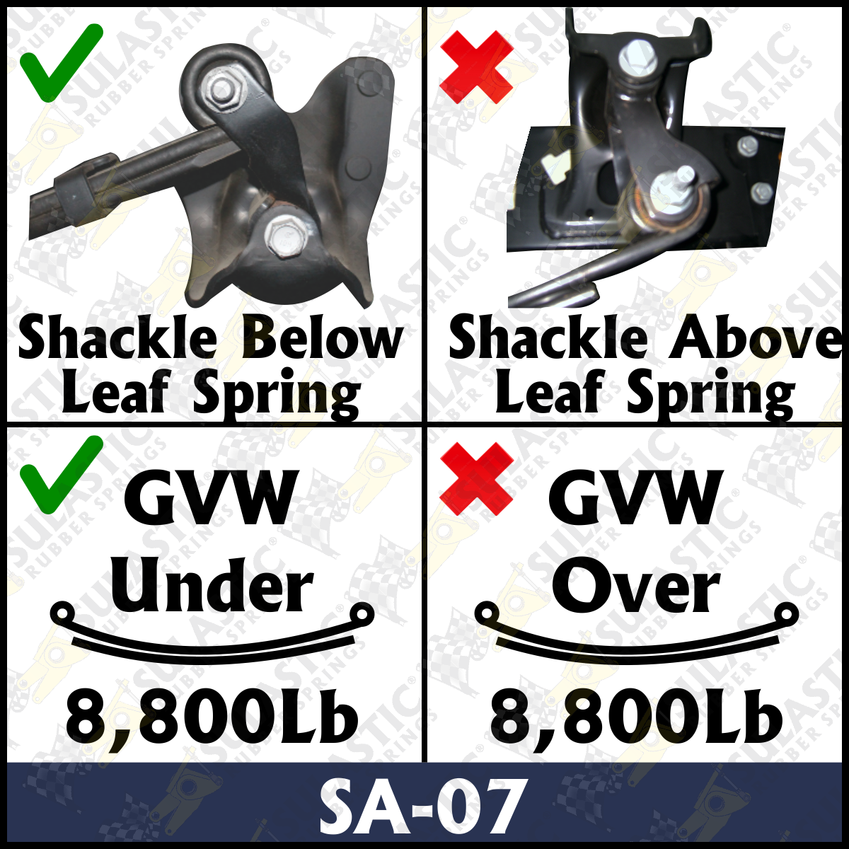 if the shackle is below leaf spring (SA-07 Model) this model works for: