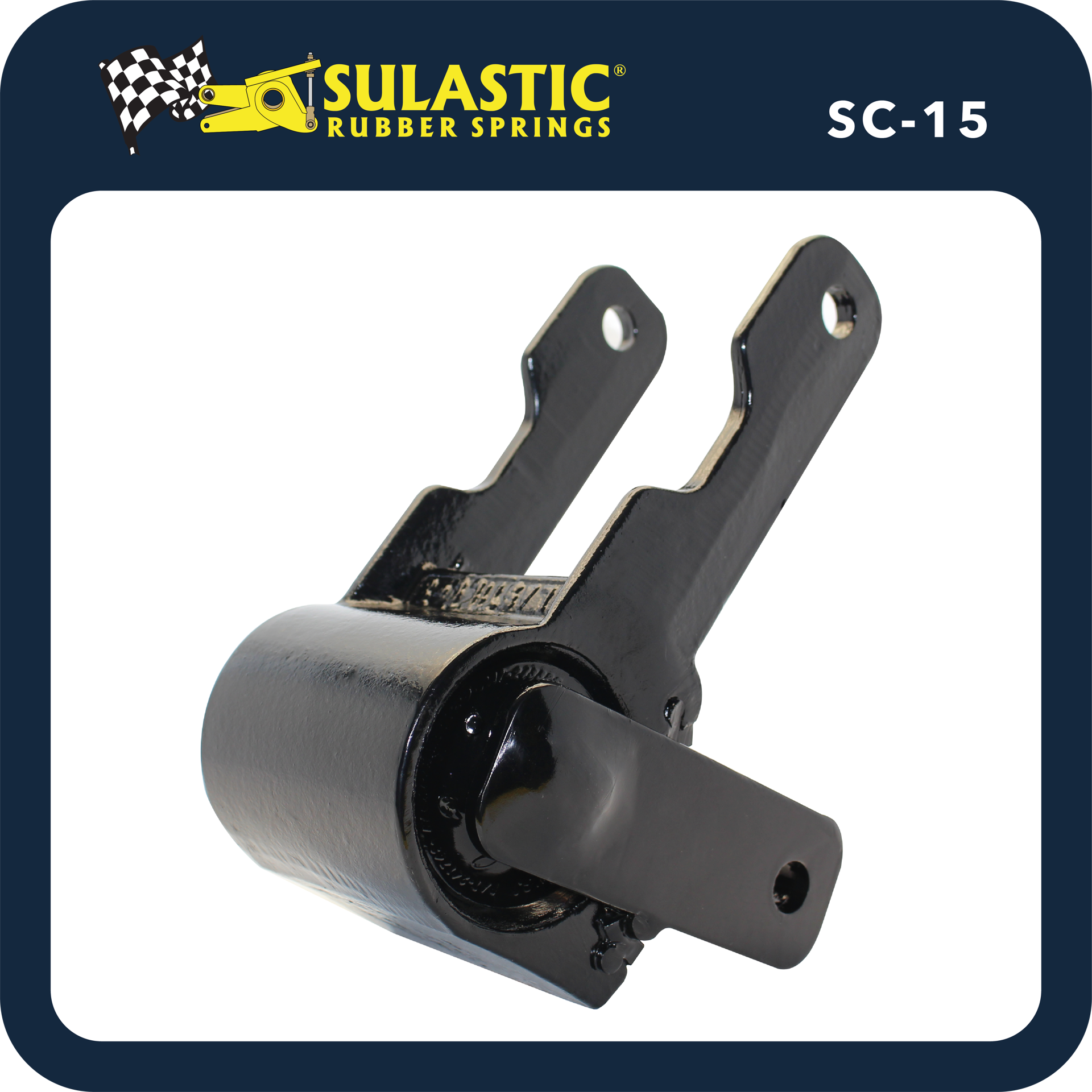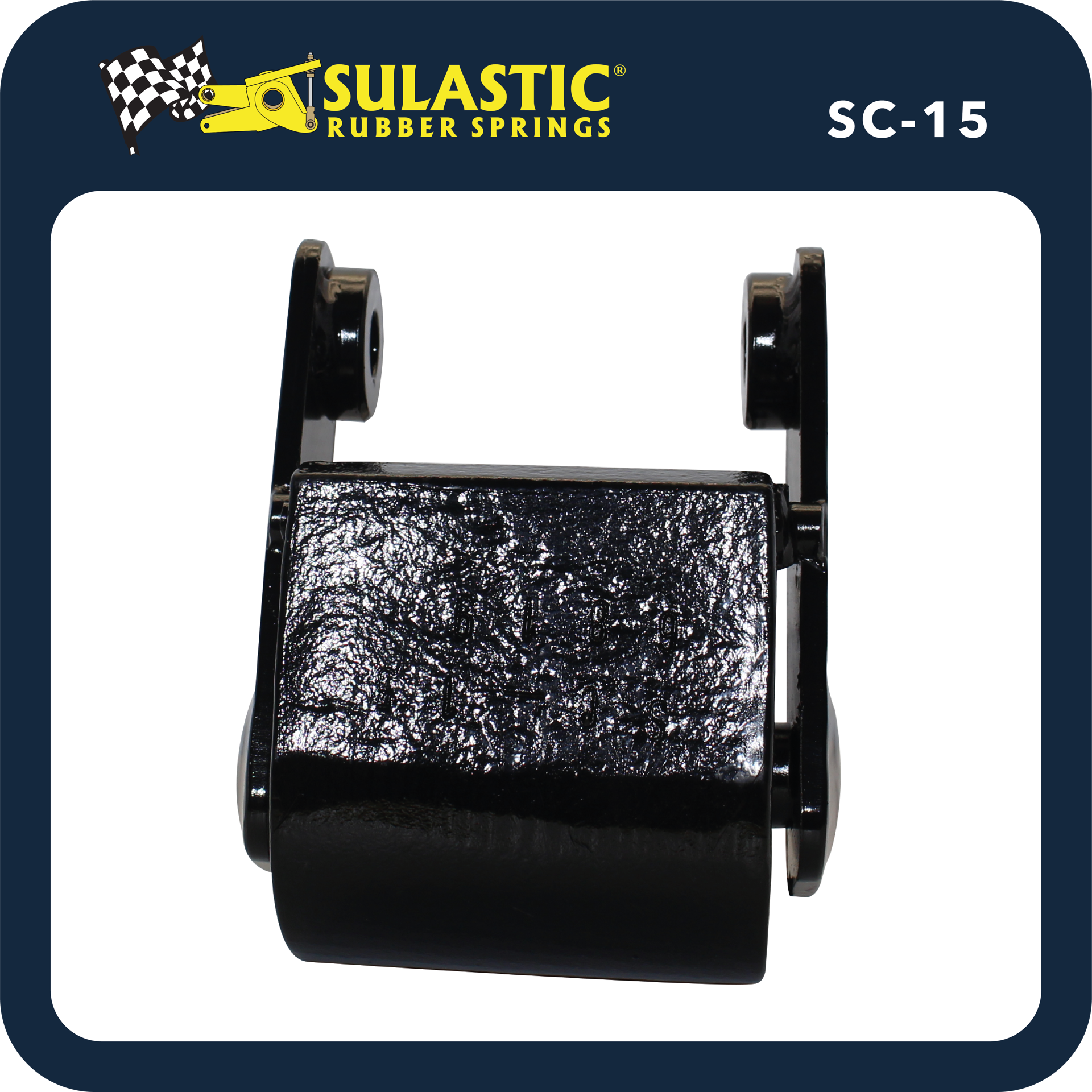 The Sulastic shackle typically consists of a central pivot point with elastomeric elements on either side. These elastomeric elements act as shock absorbers and allow for a certain degree of movement and flexibility in the suspension system, improving the vehicle's ability to absorb road imperfections and providing a more controlled and comfortable ride.